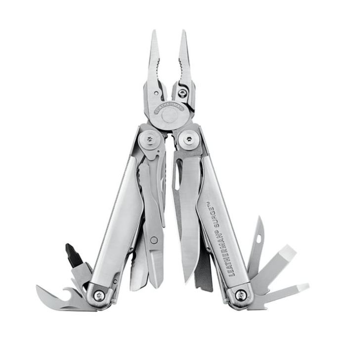 Leatherman Surge jedan je od dva naša najveća multialata. U njega su ugrađena naša najveća kliješta i najduže oštrice noževa. Sa svojim izmjenjivim oštricama, izmjenjivim rezačem žica od visokokvalitetnog čelika, Surge je stvoren za teške poslove i ruke koje ih rade. Četiri alata koji se otvaraju s vanjske strane omogućuju lakše korištenje i brz pristup.