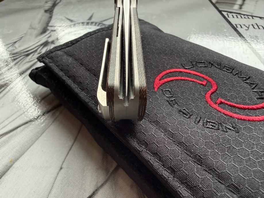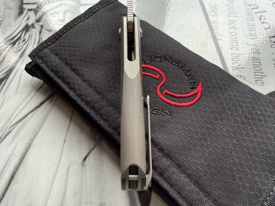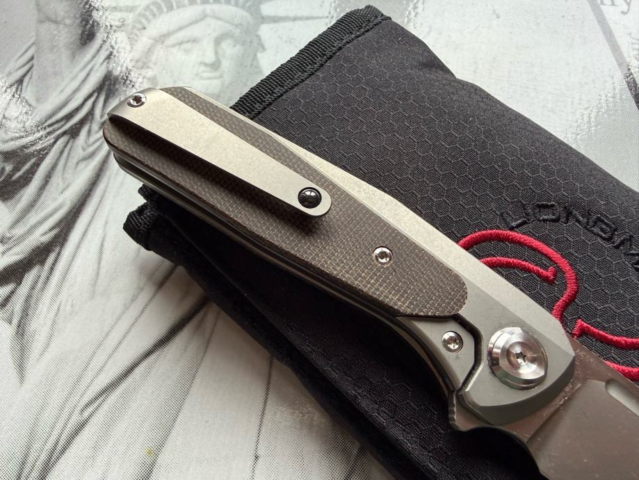 Oštrica je izrađena od M390 čelika sa drškom od titana i ulošcima od micarte…na klipu za džep se nalazi keramička kuglica za lakše vađenje i stavljanje noža u džep.