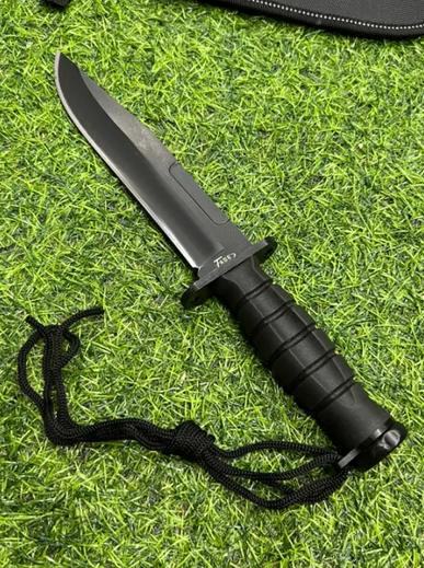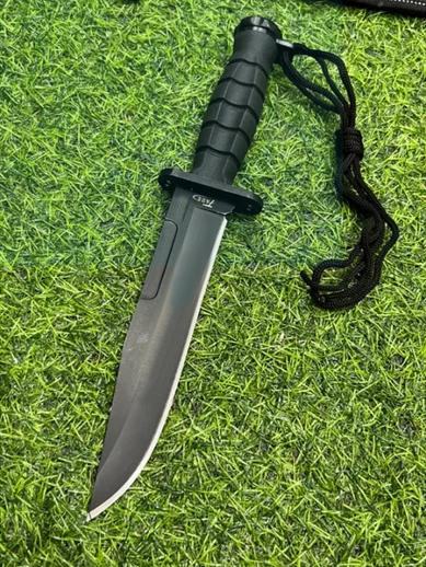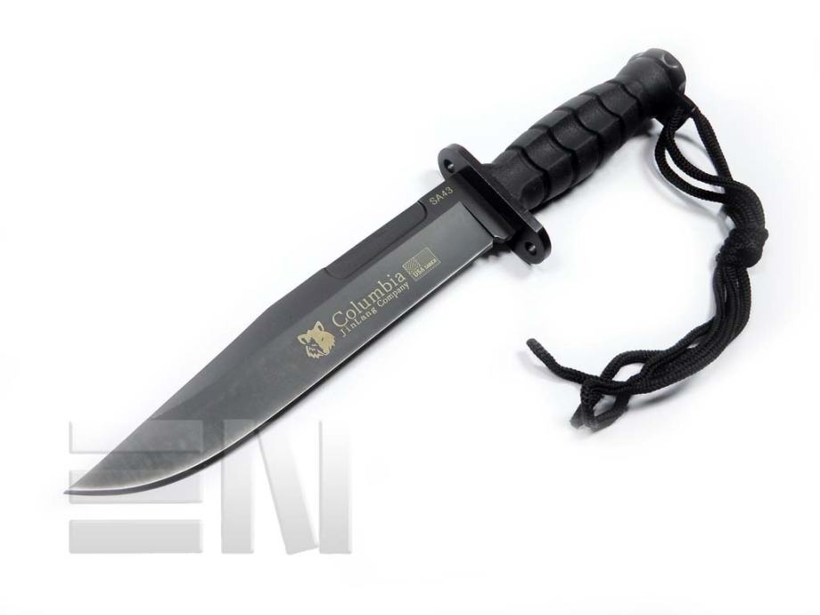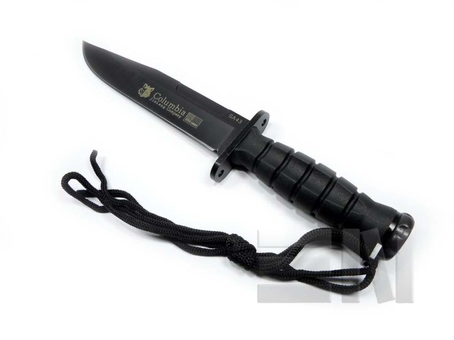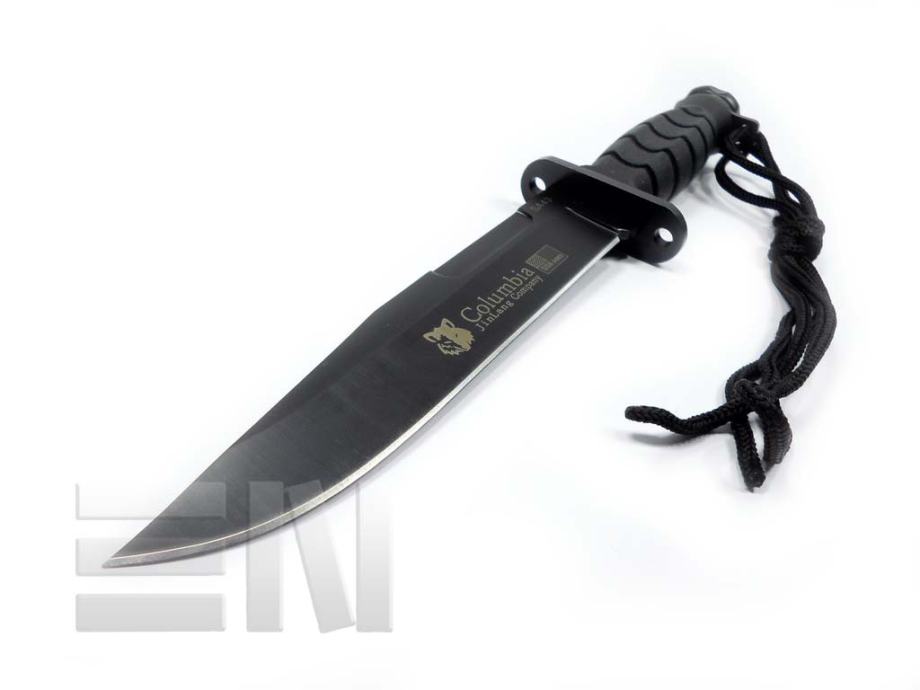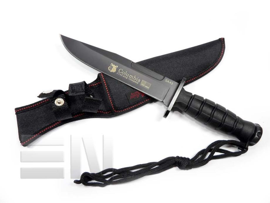Fiksni Lovački nož COLUMBIA SA43 ukupne dužine 30,5cm, 18,5cm x 4mm oštrica od nehrđajućeg čelika, nož ima fiksnu oštricu / fultang / 10,5cm drška ima gumenu, reljefnu prevlaku koja omogućuje dobar prihvat i mokrim rukama i sigurnosno uže - u zaštitnoj crnoj najlonskoj futroli.