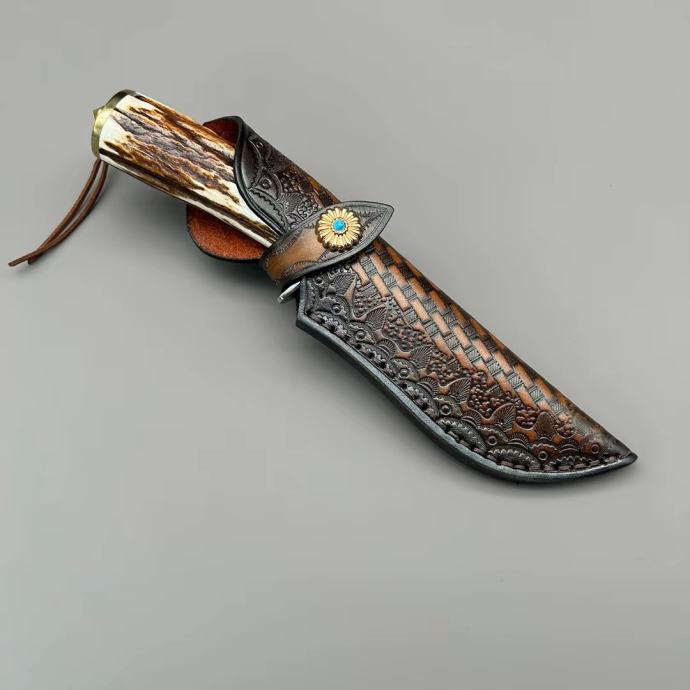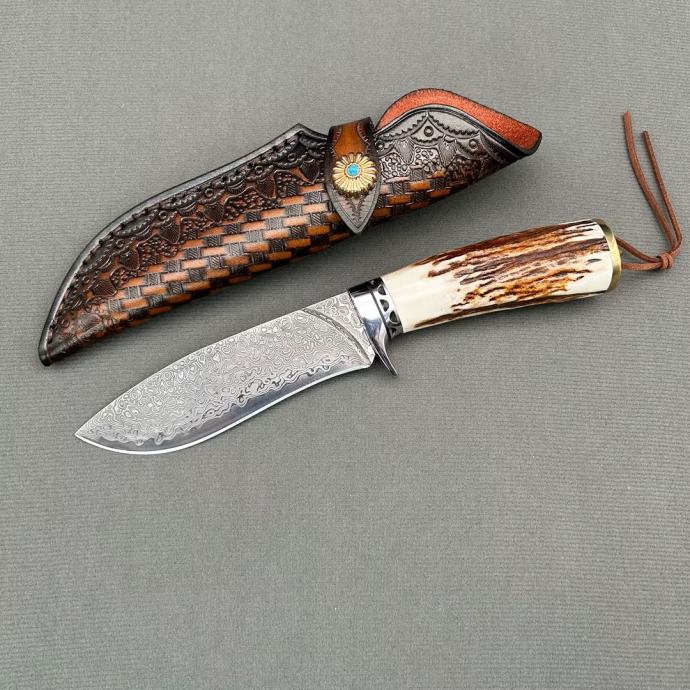 prodajem novi nekorišteni lovački nož izuzetne kvalitete i ljepote. Iskovan od sendvič materijala ( dva vanjska meka i srednji čelik visoke tvrdoće), sa drškom od jelenskog roga