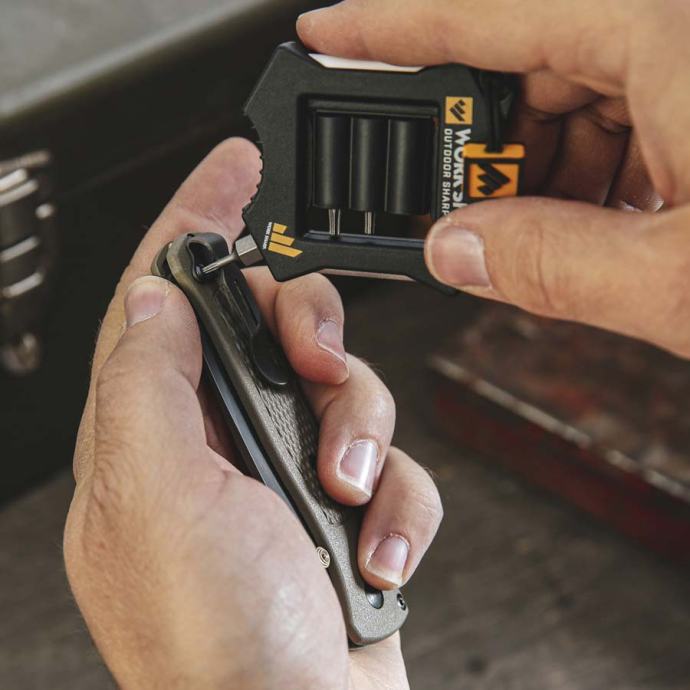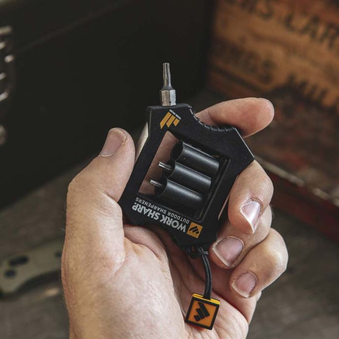 Mikro oštrilo i alat za noževe Work Sharp praktičan je, kompaktan alat, koristan kao oštrilo noža i alat koji nudi tri Torx bita. Bitovi veličina T6, T8 i T10 savršeno se uklapaju i osiguravaju sigurno rukovanje. Pohranjuju se u sredini laganog pomoćnog alata.