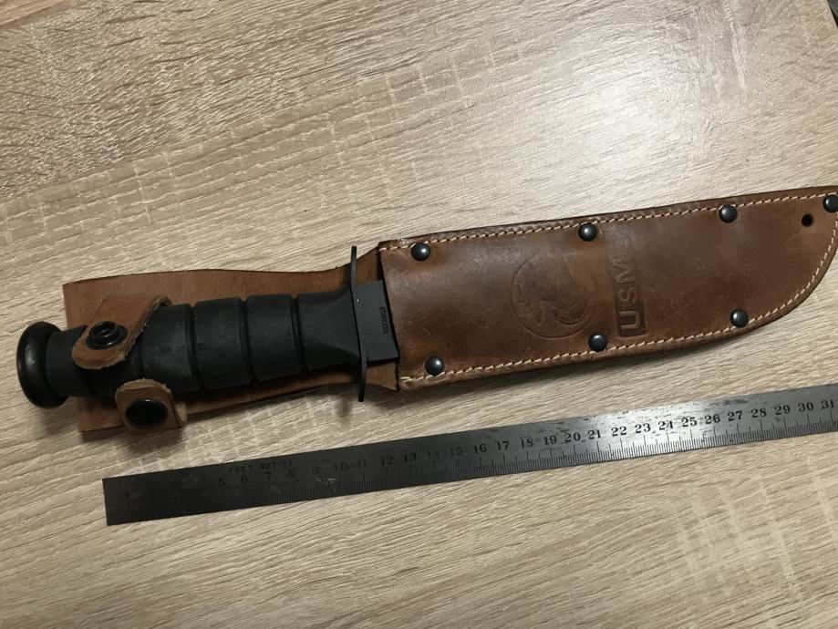 Futrola kožna za nož KABAR -MIL TEC. Futrola je dužine 33 cm , širine 6 cm , za oštricu dužine 18 cm .Nova iz kolekcije , nekorištena.