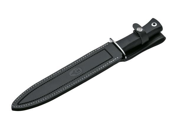 A common feature for the new hunting knife series from Muela are the extremely slip-proof grips made from plastic elastomer, which has enjoyed considerable popularity among all knife users who rely on knife functionality as the most important criterion. Not only in wet conditions, but also in extreme cold or with gloves, plastic elastomer provides dramatically better grip with greatly enhanced handling over classic grips made from natural materials. Of course, this also significantly improves resistance to wetness. A nehrđajući čelik guard element closes the grip toward the blade. Shipped with black leather sheath. Full size trapper knife. The high-strength, single-edged blade is ideally suited for hunting and classic trapper uses. 420 blade steel.