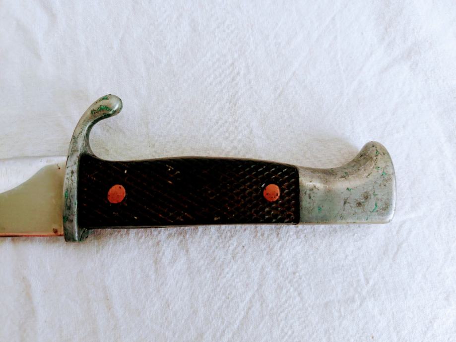 Vidljivo naknadno nitanje bakrenim zakovicama na tjelu drške.