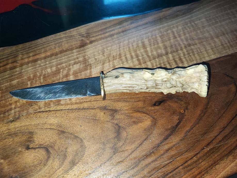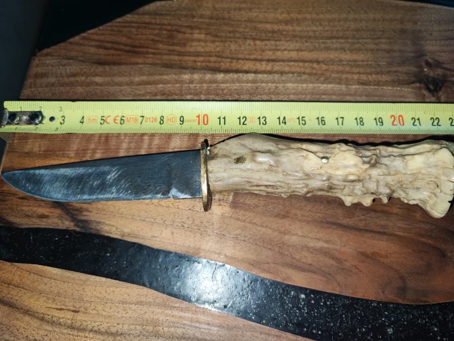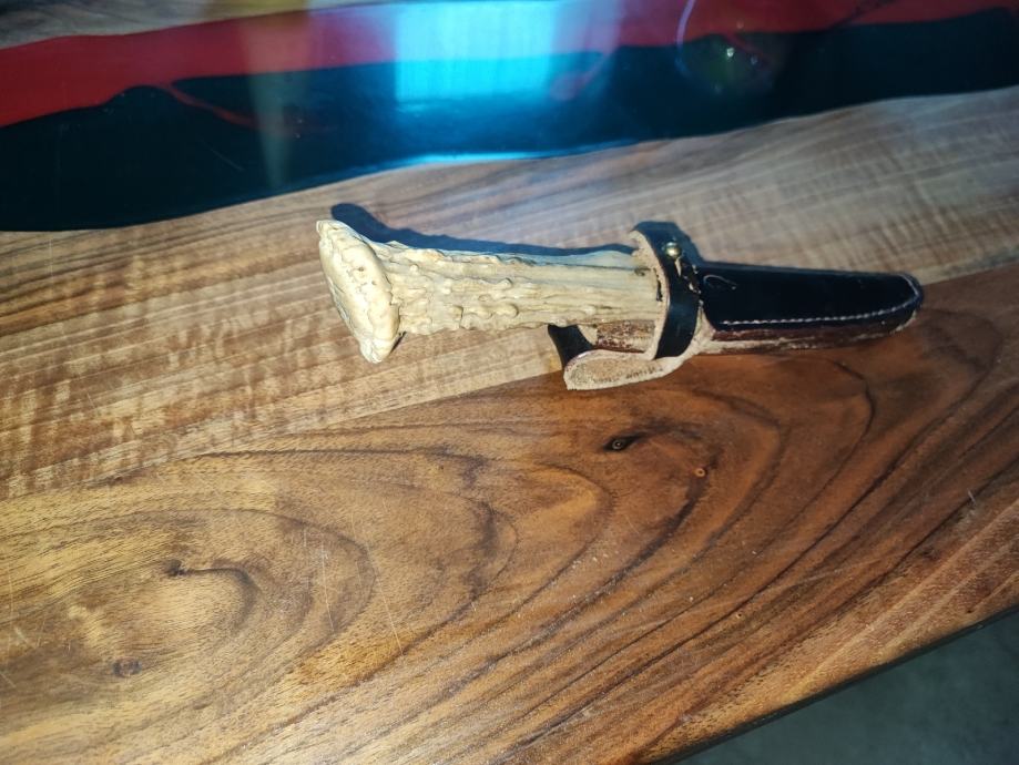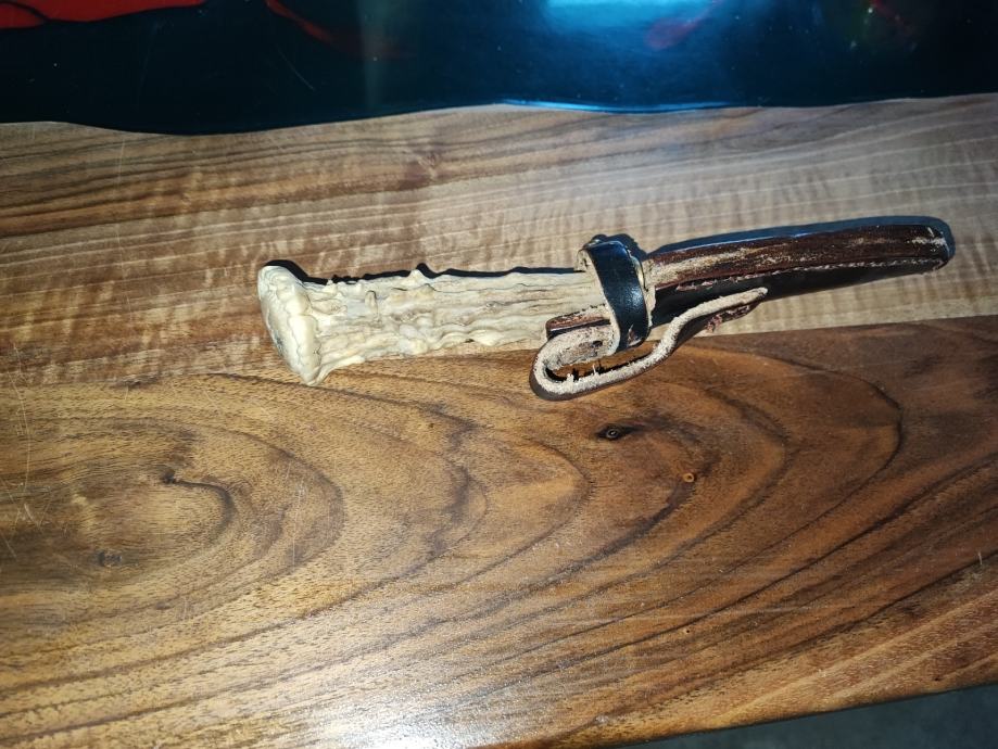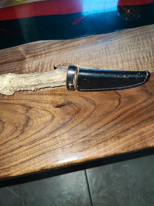 Prodajem nož ručni rad. Ručka od roga, kožna futrola.