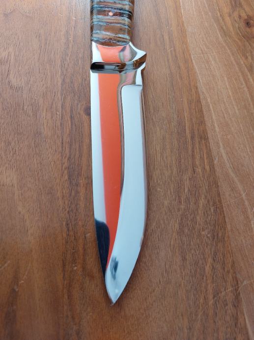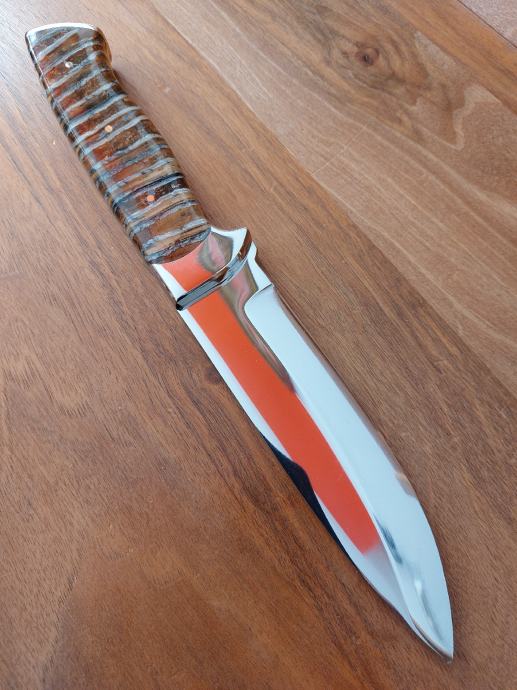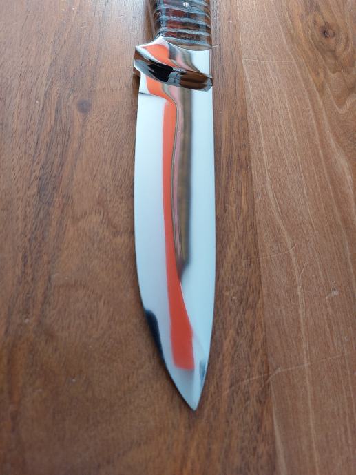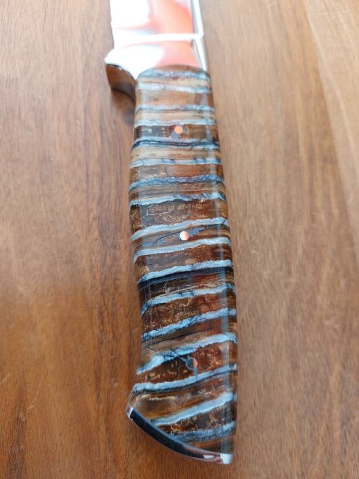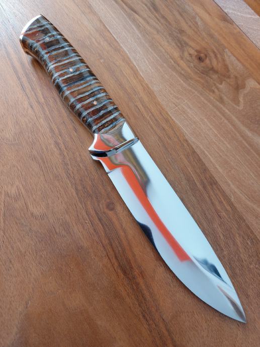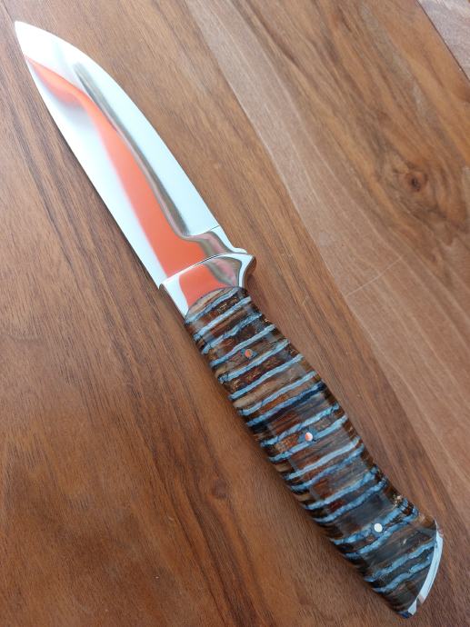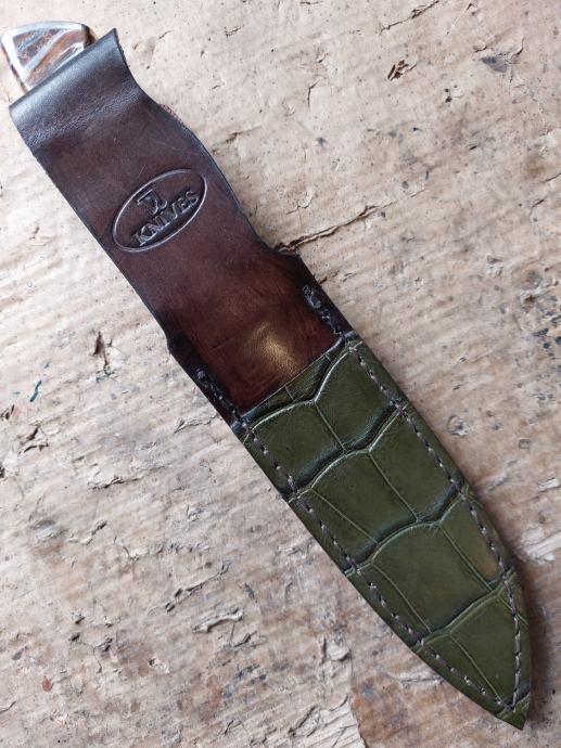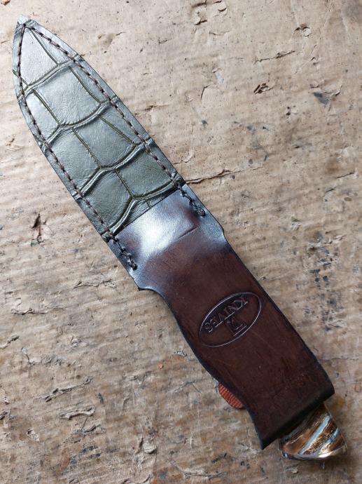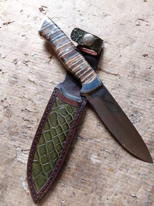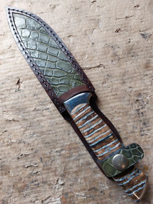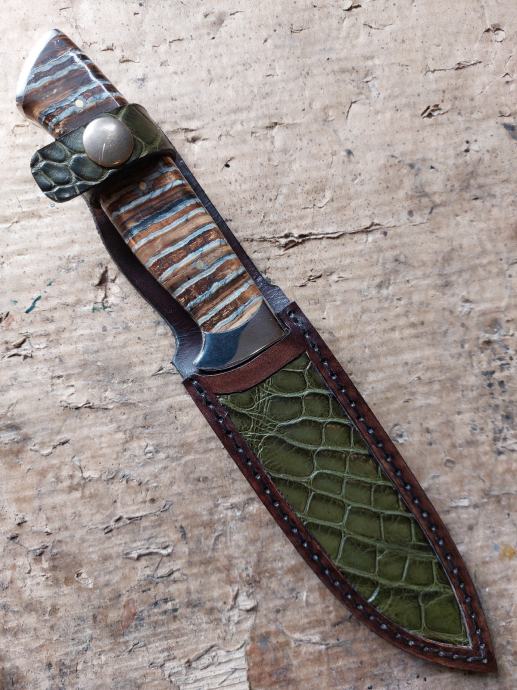 Prodajem nož.Očtrica čelik Böhler N690,drška stabilizirani zub mamuta,futrola goveđa koža u kombinaciji sa kožom krokodila.