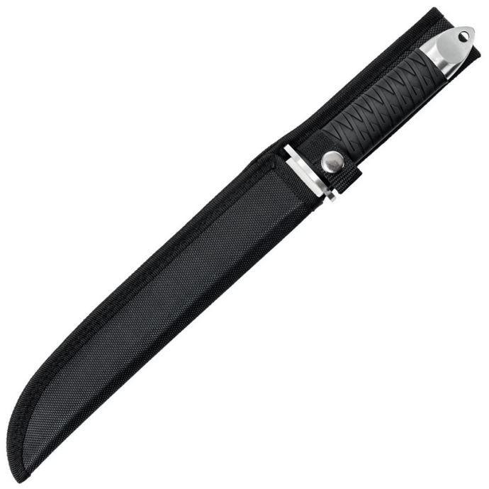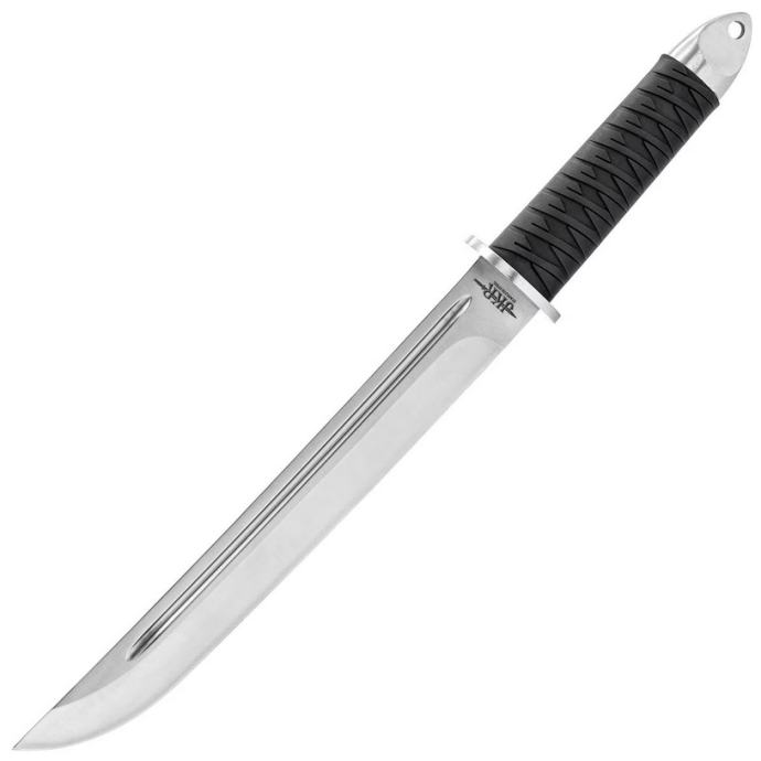 Oštrica je izrađena od nehrđajućeg čelika, odlikuje se visokom otpornošću na koroziju i lakim oštrenjem. Gumena ručka prekrivena je protukliznom teksturom. Ovalni crossguard, koji podsjeća na japansku tsubu, sprječava klizanje ruke na oštrici. Čelična oštrica s rupom za uže koja se nalazi na kraju drške može se koristiti kao dodatni terenski alat.