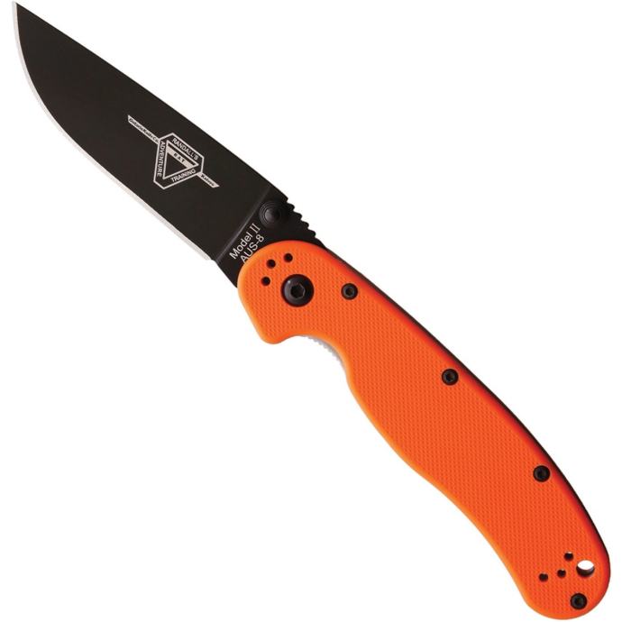 Oštrica debljine 2 mm izrađena od čelika AUS-8 prekrivena je premazom protiv hrđe i reflektirajućim premazom, opremljena žljebovima za prste na vrhu, otvara se palcem.