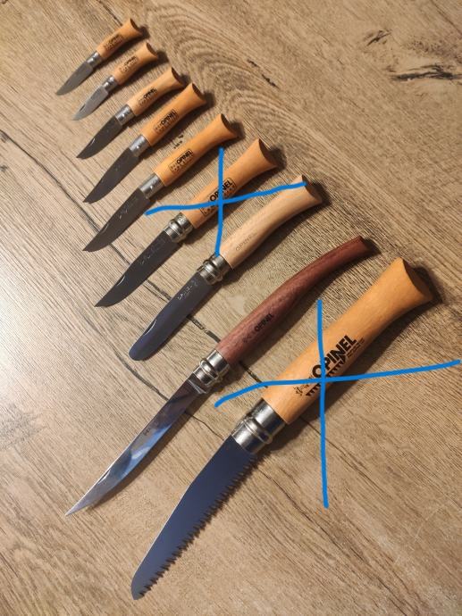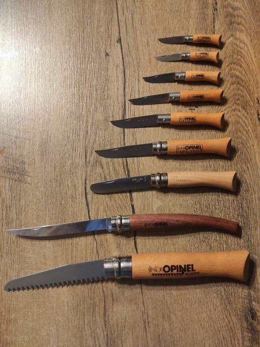 Prodaju se Opinel noževi sa slika , cijena za sve ( osim ovog prekriženog na prvoj slici ) je 70 eura , moguća i pojedinačna prodaja onda je cijena po dogovoru .