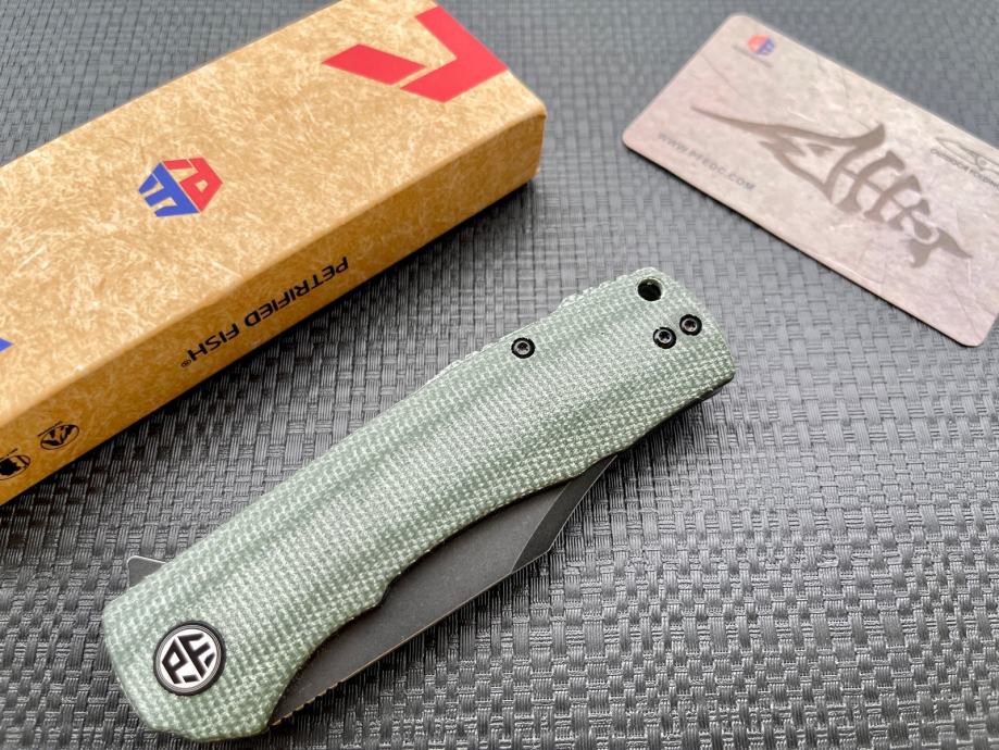 Jako lijep, skoro potpuno novi, dva tri puta nošen u džepu, nije ništa rezano…originalna oštrica gore. Cijena fiksna bez zamjena!