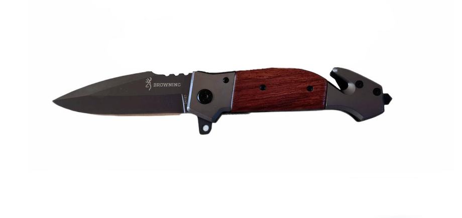 Preklopni nož Browning DA 167 sa drvenom ručkom, taktički, vojno lovački kamping nož, prilagođen za otvaranje jednom rukom, sa dvije oštrice, otvaranje potpomognuto oprugom (posjeduje oprugu)
