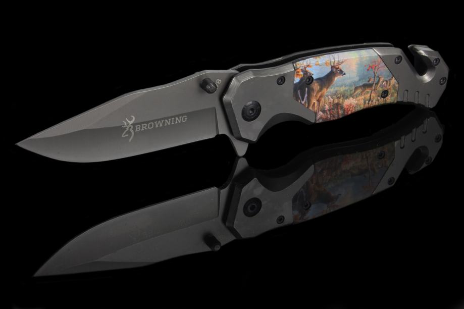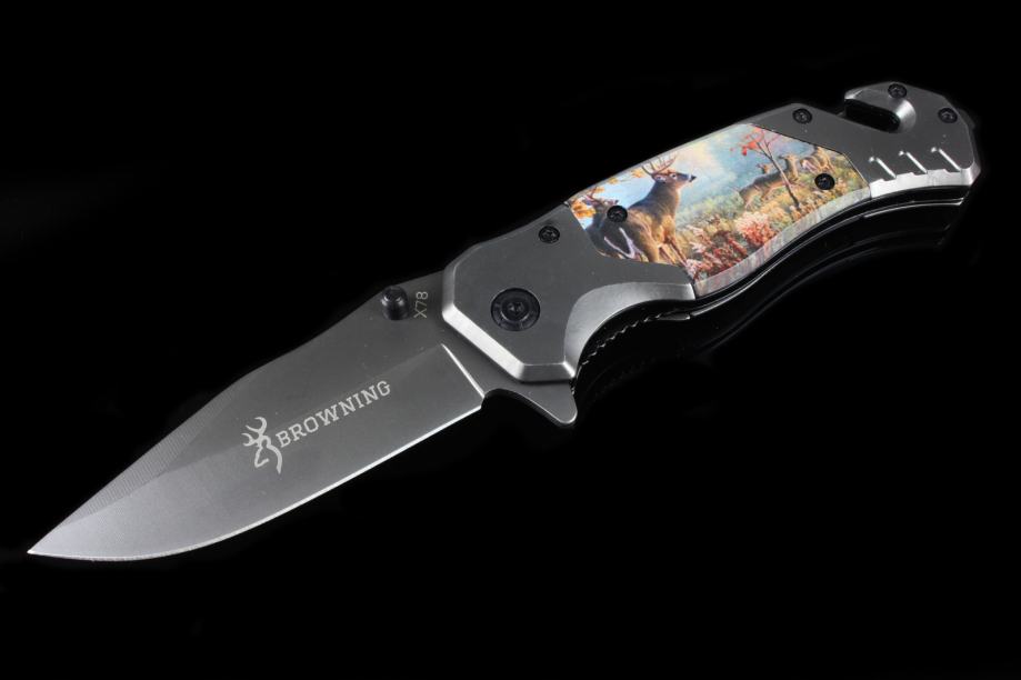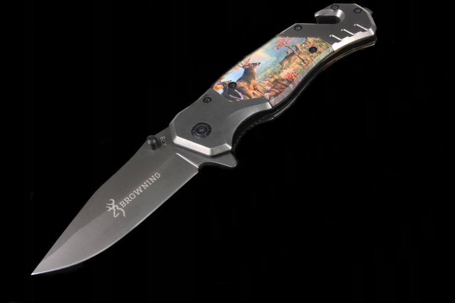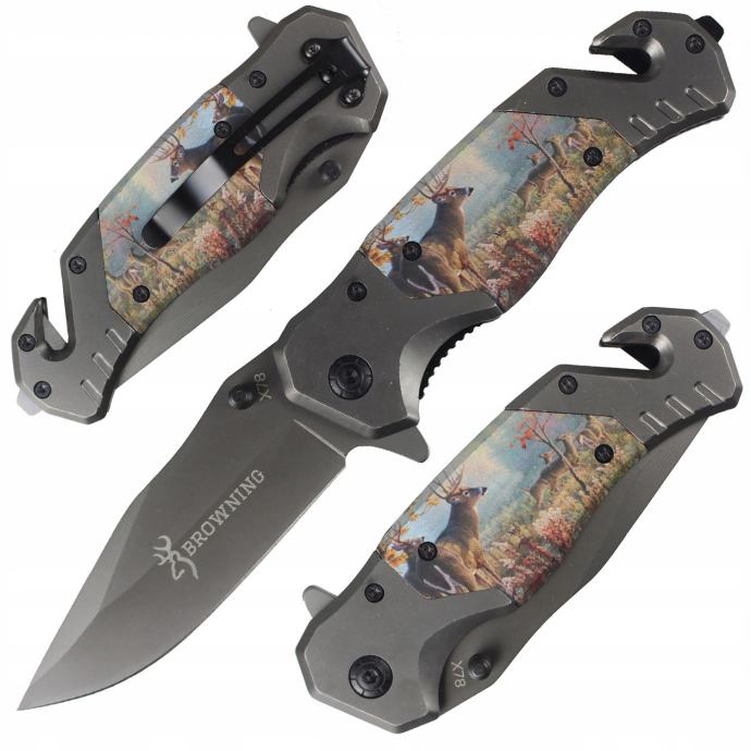 Preklopni nož Browning X78 DEER, ovaj izuzetno izdržljiv i otporan večim dijelom izrađen od metala, lovačko-ribolovni kamping nož, prilagođen za otvaranje jednom rukom, sa dvije oštrice (posjeduje oprugu, skakavac). Survival Pocket vrhunske kvalitete.