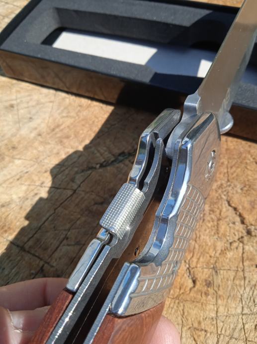 Uzica ima mali specijalni metalni klin osigurač koji služi kao dodatna brava. Umetnut je u posebnu rupu u ručki bliže oštrici, blokira rad mehanizama, popravljajući radni položaj oštrice.