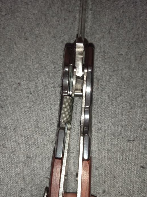 Na ručki se nalazi zakačka koji vam omogućuje nošenje noža tako da ga zakačite za rub odjeće ili torbe (nije baš pogodan za đep zbog veličine i težine)