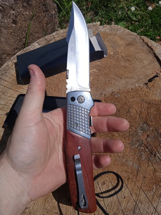 ovaj izuzetno izdržljiv i otporan veliki preklopni lovačko-ribolovni kamping nož, prilagođen za otvaranje jednom rukom, (ne posjeduje oprugu). Survival Pocket vrhunske kvalitete.