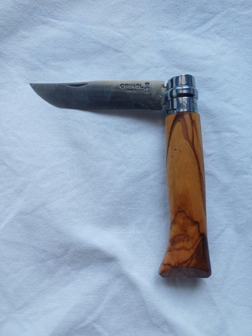 Poznati francuski brand preklopnih noževa Opinel inox, serija No 8. Model za američko tržište. Drška unikatna od posebnog drveta. Inox kočnica za oštricu u otvorenom i zatvorenom položaju. Novo. (-1)