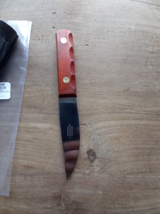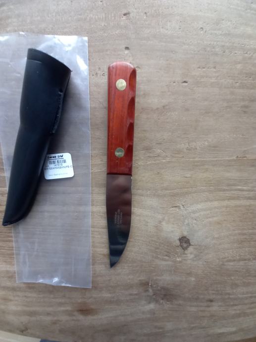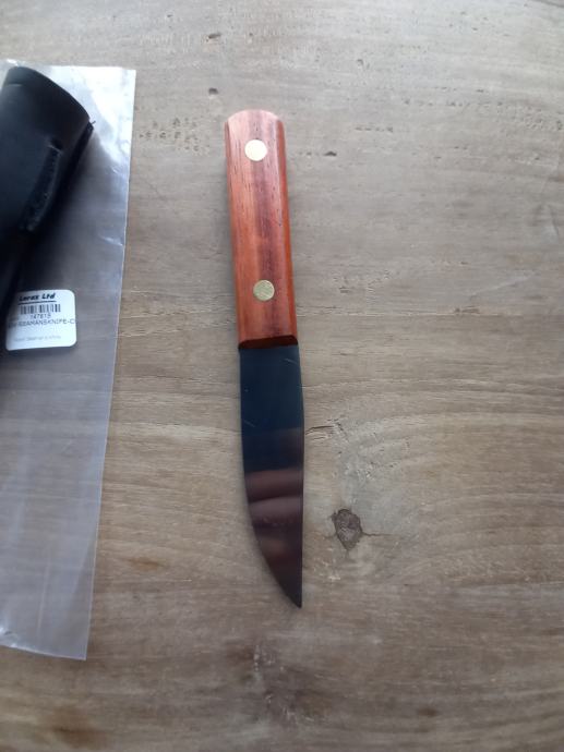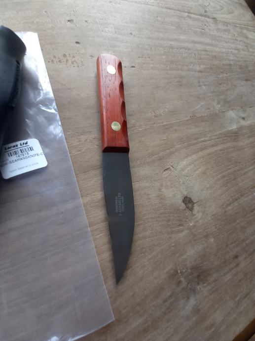 The John Nowill Seamans knife is simplicity itself. No whistles and bells just a piece of British carbon steel, two hardwood handle scales and a black leather belt sheath make up an unpretentious, use for anything and anywhere utility knife.
