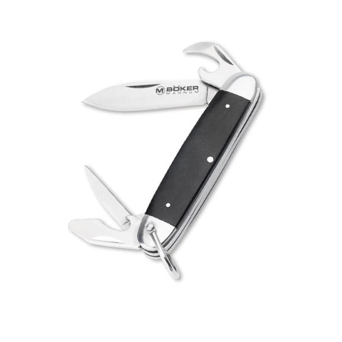 Rasklopni nož Magnum Classic Pocket Steel 01MB334 je koristan i praktičan rasklopni, džepni nož. Oštrice su napravljene od nehrđajućeg čelika 440 kao i otvarači za boce i limenke. Oblog drške je od kvalitetnog palisandrovog drva s prstenom kroz koji se može provući ili vezica ili karabiner. Idealan je kao izletnički i kamperski džepni nož.