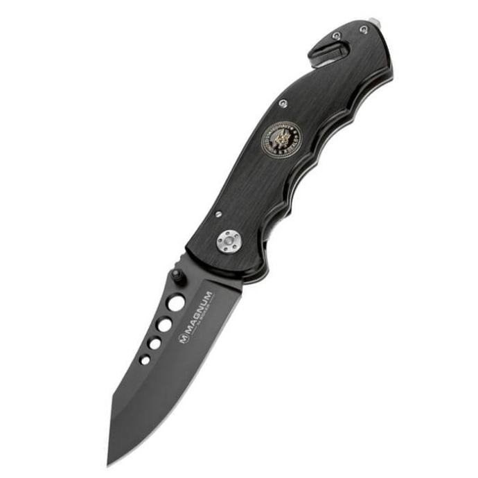 Ovaj funkcionalni rasklopni nož je inspiriran elitnim odredom marinaca - Navy SEALS, te na svojoj dršci nosi grb ove postrojbe. Izdubljeni dio oštrice daje nožu vrlo atraktivan izgled i umanjuje mu masu. Na kraju drške se nalaze praktični rezač pojaseva i razbijač stakala. Izvrstan nož za hitne situacije!