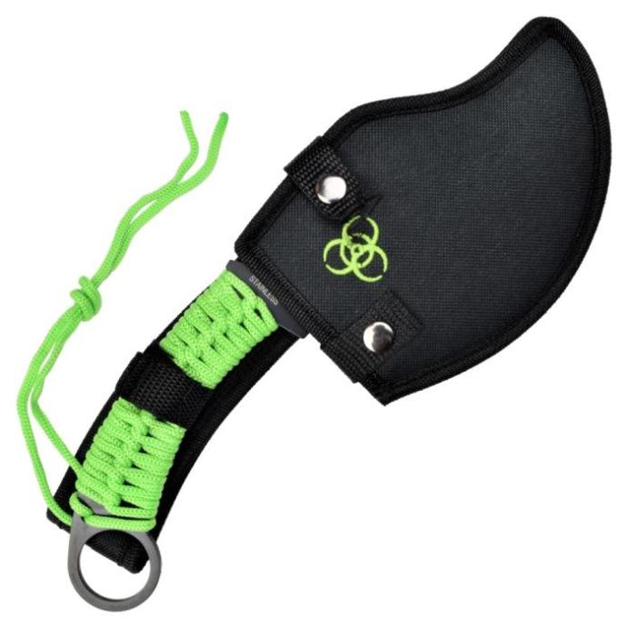 SCK 5100 sjekira. Drška je čelična i omotana paracordom. Cordura futrola. Ukupna duljina 295mm. Duljina naoštrenog brida: 147mm. Masa: 216g