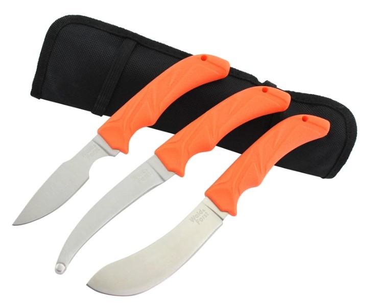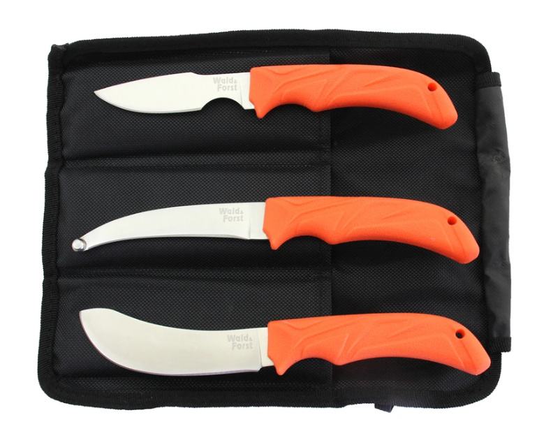 Wald & Forst set za sastoji se od 3 različite vrste noževa koji su neophodni za guljenje divljači. Noževi za otvaranje (10,5 cm oštrice, ukupna duljina 22,5 cm), Skinner nož (11 cm oštrice, ukupna duljina 22,5 cm), mali nož (9 cm oštrice, ukupna duljina 20,5 cm). Oštrice su izrađene od čvrstog čelika 440A. Svi noževi imaju narančastu neklizajuću plastičnu ručku s ušicom za remen. Uključujući praktičnu transportnu torbu.