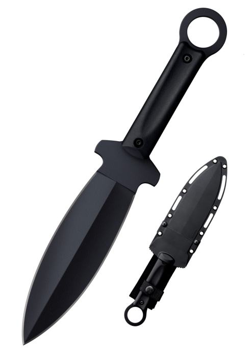 Nož s potpisom na Cold Steel® Shanghai Shadow® omogućuje ogromnu svestranost pri upotrebi i rukovanju ovim popularnim i zabavnim nožem. Omogućuje potpuno sigurno držanje kada je kažiprst stavljen na mjestu kroz otvor. Vlasnik također može okrenuti oštricu oko kažiprsta za brzu promjenu držanja, pa čak i koristiti prsten kao sredstvo za proširenje svog dosega za čak 4 inča (približno 10 cm).