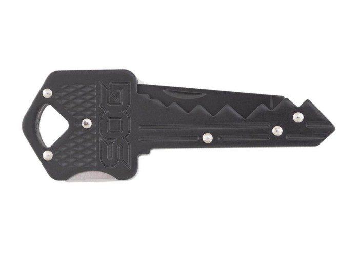SOG Key Knife Black je pomalo nesvakidašnji alat za svakodnevno nošenje i korištenje. Zahvaljujući malim dimenzijama i zanemarivoj masi, neprimjetno se nosi u džepu, kao privjesak ili u novčaniku. Sječivo je iz 5Cr13MoV čelika, a kočnica je Backlock. Drška je izrađena iz nehrđajućeg čelika.