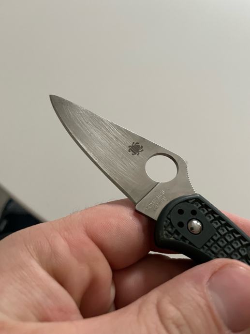 Nozic je koristen dugo te ima puno tragova koristenja ali je cvrst, nema bladeplaya, ni chippanja. Samo estetski nedostaci.