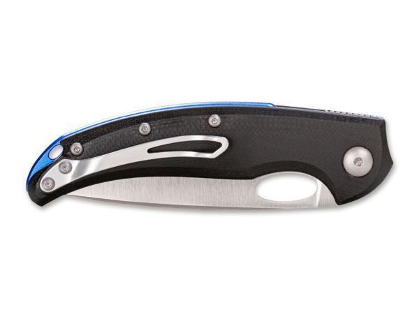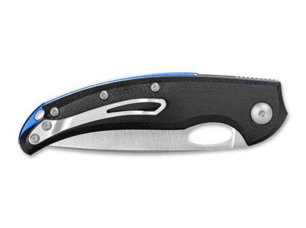As a more compact version of the F19-10, the Steel Will Sedge F19M-10 expresses its closeness to nature through its curved lines, which are reminiscent of sedge. Equipped with a robust blade made of satin-finished D2 and an ergonomic handle made of G10, the EDC easily masters everyday cutting tasks. Thanks to the generous thumb hole and secure linerlock, the EDC knife has a high utility value. The blue aluminium spacer, the convertible clip (tip-up / l+r) and the lanyard hole round off the equipment package.