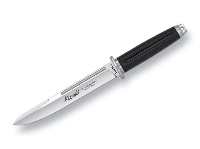 Inspiriran duhom tradicionalnog japanskog oružja, Tokisu Kissaki fiksni nož nosi naziv koji se u japanskom jeziku odnosi na vrh katane – "Kissaki". Ovaj moderan nož uspješno spaja estetsku eleganciju i funkcionalnu robusnost. Oštrica oblika droppoint izrađena je od 7Cr17MoV nehrđajućeg čelika, poznatog po svojoj otpornosti na koroziju i lakoći održavanja. Ricasso, obostrani žlijebovi i čuvar nalik na tsubu vizualno odaju počast tradicionalnim japanskim mačevima, stvarajući ne samo funkcionalan, već i izrazito dojmljiv alat.