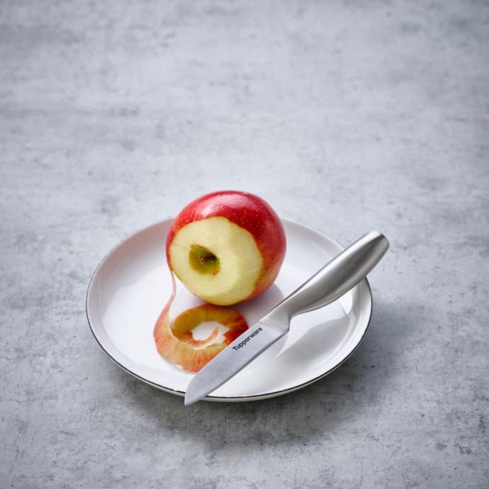 Prodajem potpuno novi Tupperware Maestro Series nož za guljenje koji je savršen za pripremu voća i povrća. Ergonomska drška od nehrđajućeg čelika osigurava udobno korištenje i precizno rezanje. Tupperware kvaliteta jamči dugotrajnost i odličnu funkcionalnost u vašoj kuhinji.