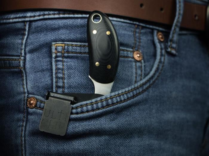 ULTICLIP Ulticlip 3+ kvačica omogućuje nošenje korica noževa, futrola pištolja te druge opreme za pojasom ili u džepu, pri čemu drži korice ili futrolu pri rubu džepa, spremnu za korištenje. Potpuno čelične izvedbe, izdržljiva je i čvrsta. ULTICLIP Ulticlip 3+ je poboljšana izvedba Ulticlip 3 kvačice, dodavanjem novih rupa za spajanje na futrole i korice. ULTICLIP Ulticlip 3+ kvačica se isporučuje BEZ vijaka.