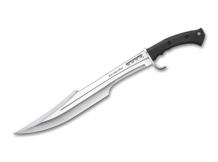 United Cutlery Honshu Spartan Sword spoj je klasičnog spartanskog kratkog mača te modernih elemenata Honshu serije. Rezultat je izuzetno atraktivan borbeni nož odnosno kratki mač. Drška je gumirana za udoban i siguran hvat. Štitnik je iz nehrđajućeg čelika. United Cutlery Honshu Spartan Sword se isporučuje s kvalitetnom kožnom futrolom.