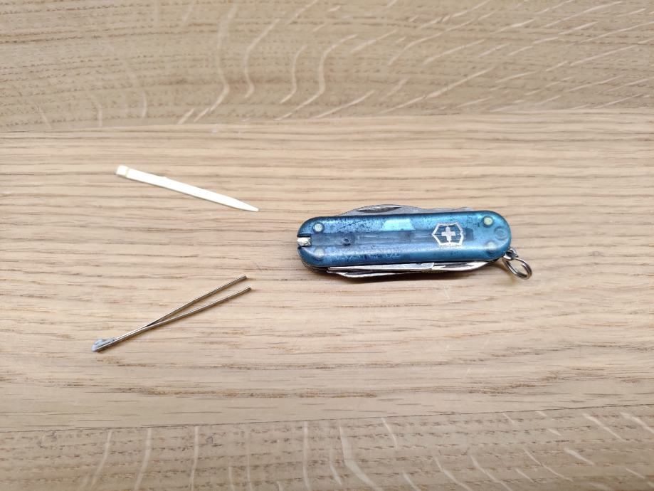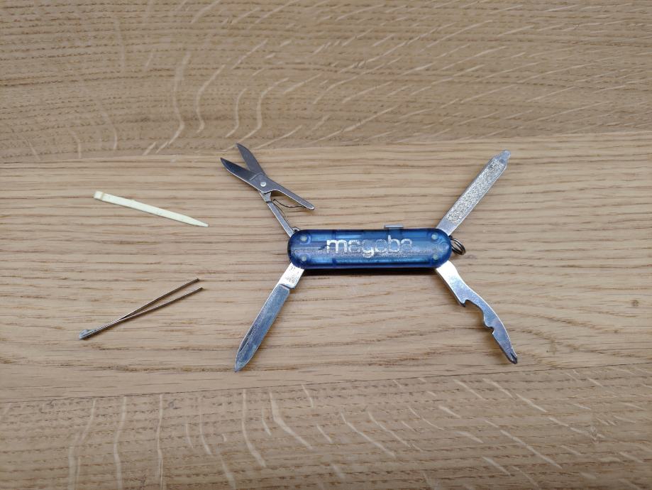 Svicarski nozic sa 11 funkcija u transparentnom plavom kucistu.