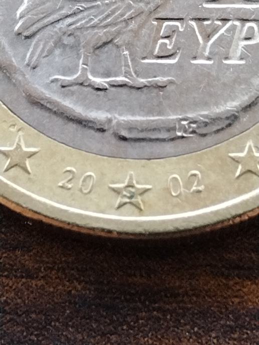 1 euro grčka, S u zvijezdi rijedak primjerak i još par grešaka na kovanica.