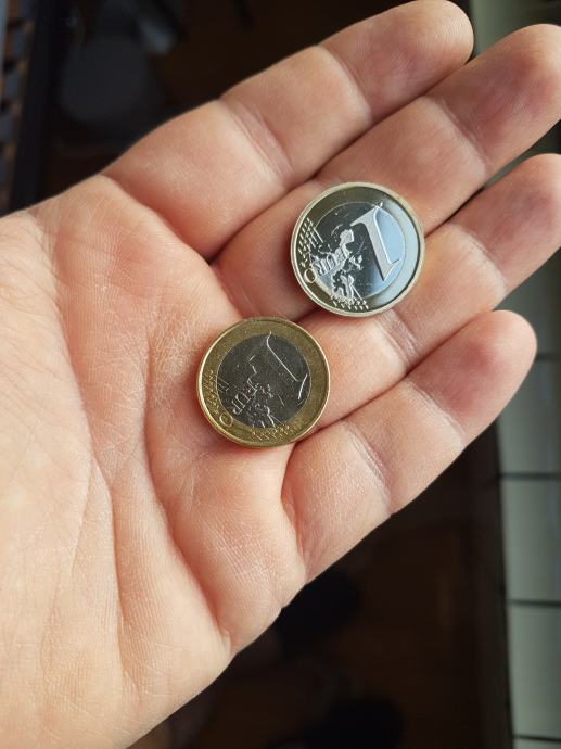 Na fotografiji zajedno sa UNC kovanicom 1E, radi usporedbe