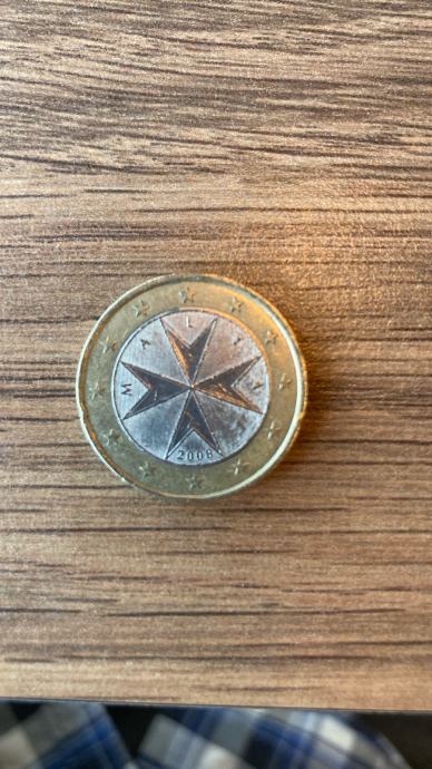 Prodaje se rijetka kovanica od 1 €, Malta iz 2008 sa slovom F u donjoj zvijezdici.