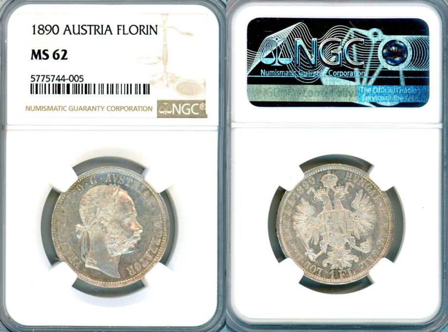 1 Florin / Gulden 1890 Franz Joseph MS62