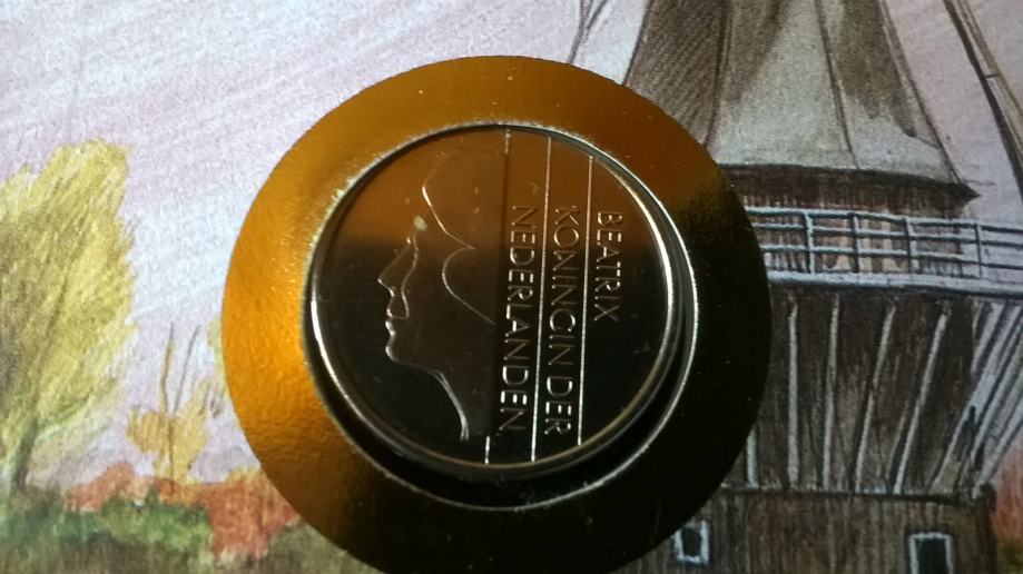 1 gulden nizozemska kovanica , kuverta , markica , pecat