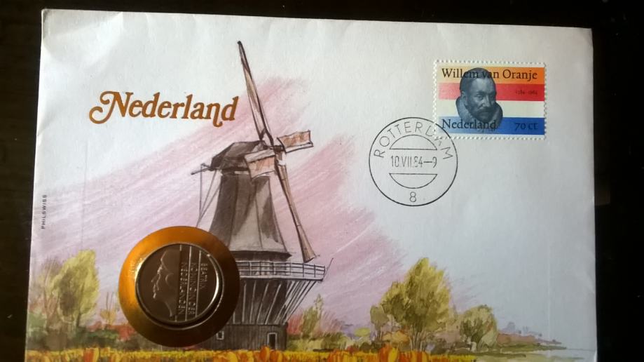 prodajem kuvertu nizozemske, 1 gulden kovanica, markica i pecat