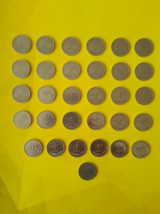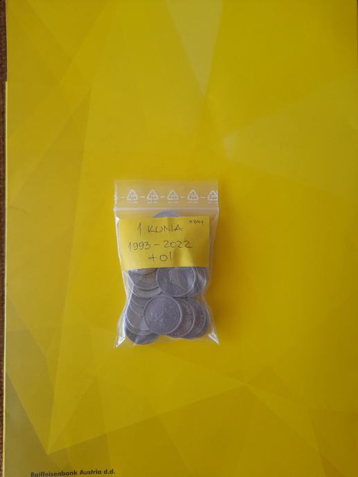 Komplet optjecajnih kovanica 1 kn sve godine od 1993-2022 + prigodna.