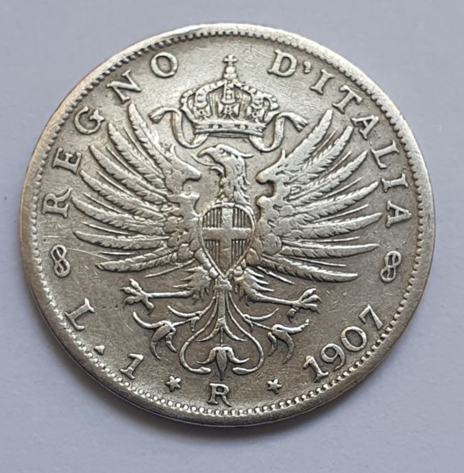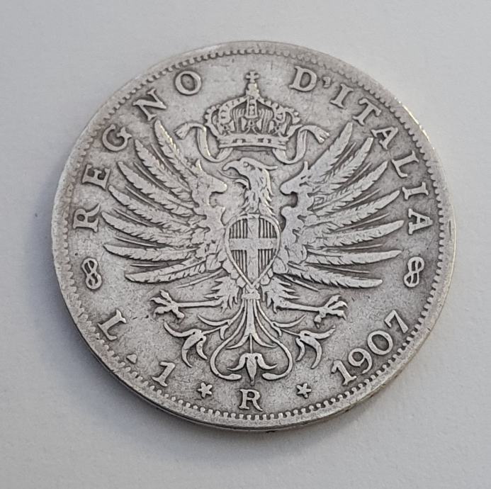1 Lira 1907. Vittorio Emanuele III - Srebro