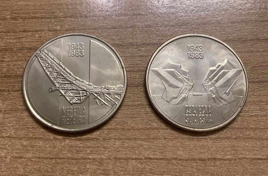 Cijena po dogovoru. Prodajem 3 identična kompleta. Odlično očuvan prigodni kovani novac u apoenu od 10 dinara izraden na osnovu Odluke Saveznog izvršnog vijeća o izdavanju prigodnog kovanog novca povodom 40. godišnjice bitke na Neretvi i 40. godišnjice bitke na Sutjesci. .