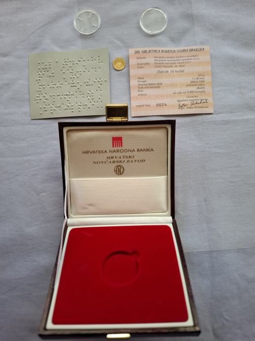 10 kuna. 200-ta obljetnica L.Braille. Zlato. Mob