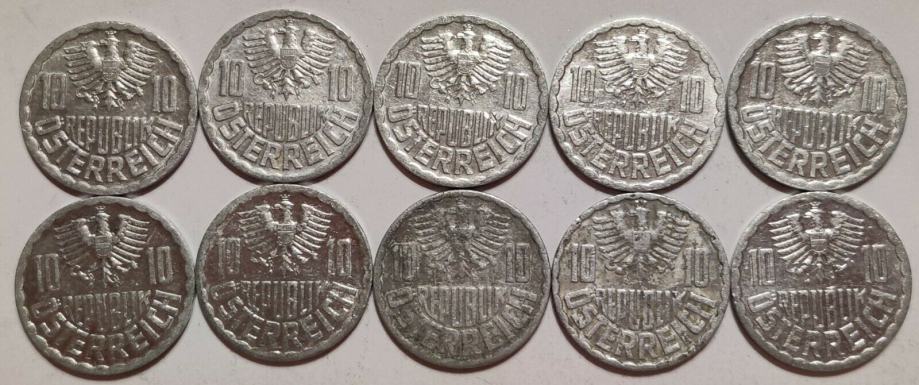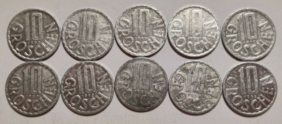 LOT 10 x Austria 10 groschen 1959 1972 1979 1981 1983 1989 1990 1992 1993 1998