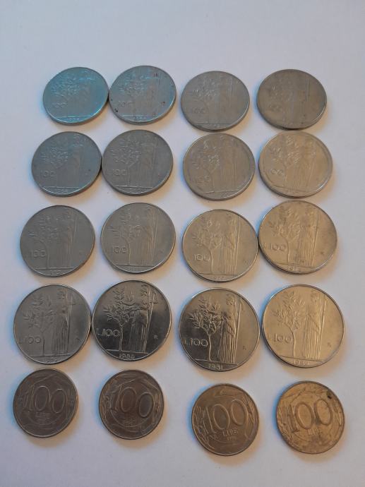 100 lira iz 1956 , 1958 , 1962-1964 , 1974-1981 , 1989 te 1993 , 1994 , 1996 i 1999 godine. Očuvano. Cijena 1 euro plus poštarina ili dogovor za Zagreb. Na upit više slika . Imam oglase za 10. 20 , 50 , 200 , 500 i 1000 lira .