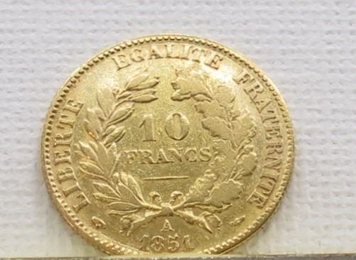 Zlatnik 10 Franaka iz 1851 godine Druga republika