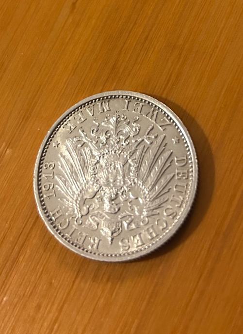 1913 A PRUSSIA KINGDOM Germany WILHELM II Old Silver 2 Mark German Coin