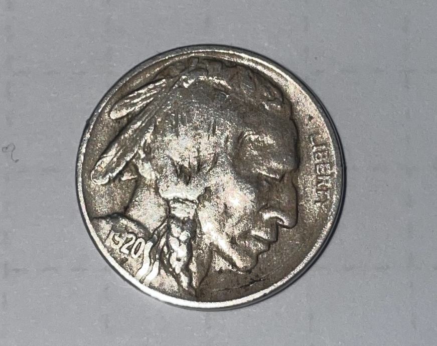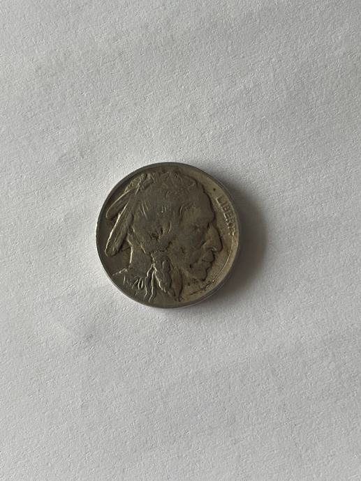 1920 Buffalo Five Cents nickel, Američka kovanica iz 1920, u rabljenom stanju, nekruženo (uncirculated)