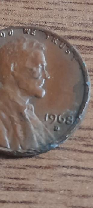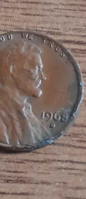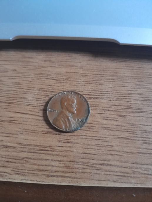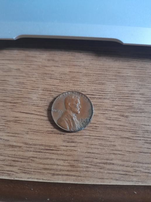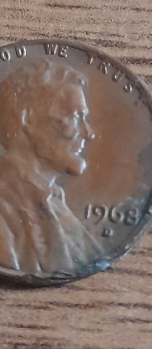 1968 one cent lincoln memorial cent s greškama (error)